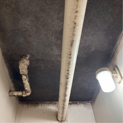 配管内部にバイオフィルムやカビが付着している場合、専用の薬剤循環洗浄が必要。市販製品では対応困難。