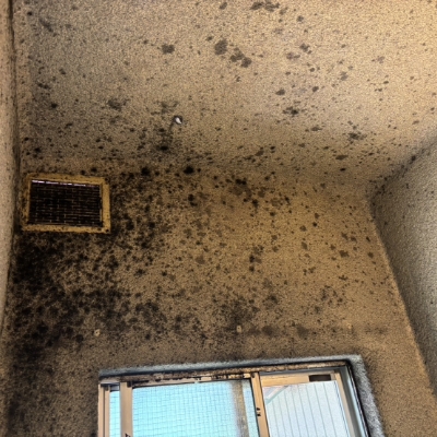 浴室の天井は湿気がこもりやすく、黒カビが広がりやすい箇所です。専用薬剤と高所施工のノウハウで、見えにくい部分まで徹底的に除去します。